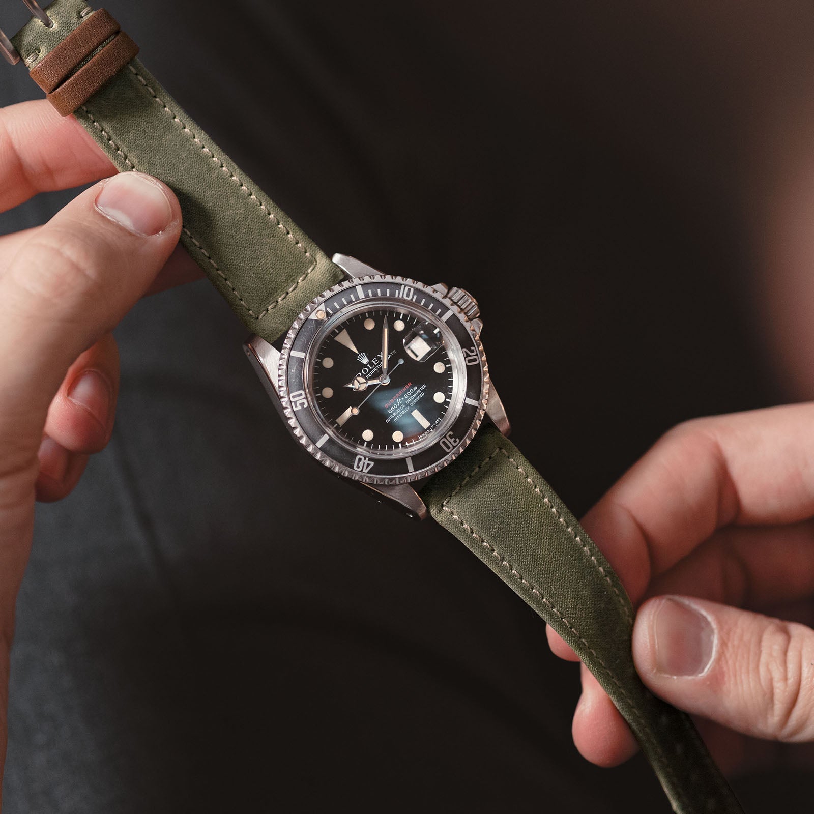 Our leather straps are made of all-natural vegetable tanned leather. There is no chemical coating or waxing on top, which is why they are so very soft and comfortable. This natural quality also causes aging of the leather by sunlight and everyday wear. Every strap gets its own individual patina, which is something we love. Please don’t treat the leather with oil or wax as it ruins the whole nature of the strap. This also comes with a warning: avoid direct contact with water, as it may cause stains. So don’t wear your strap in the shower or when swimming and be cautious of heavy rain or perspiration. We recommend not wearing the strap in the gym.